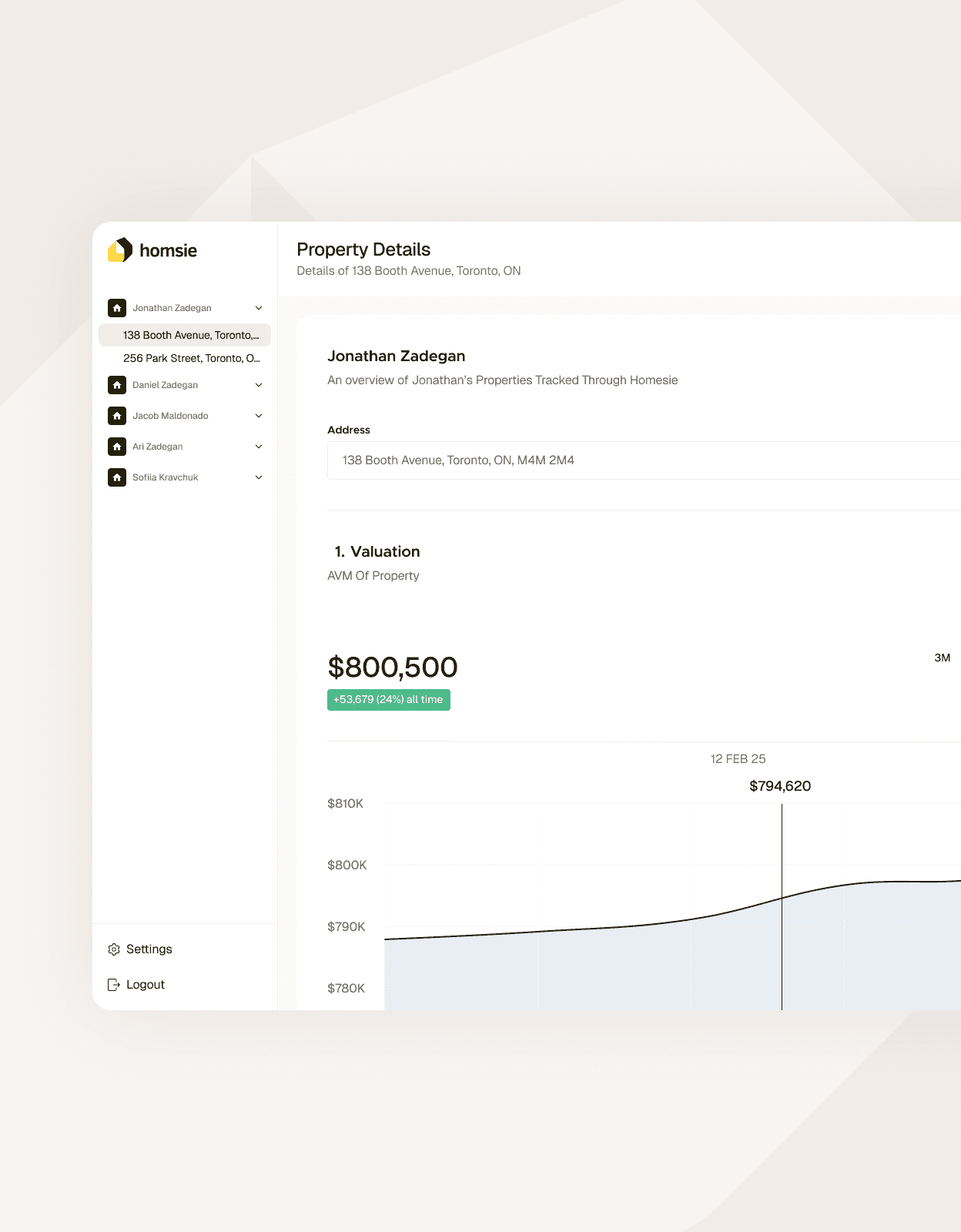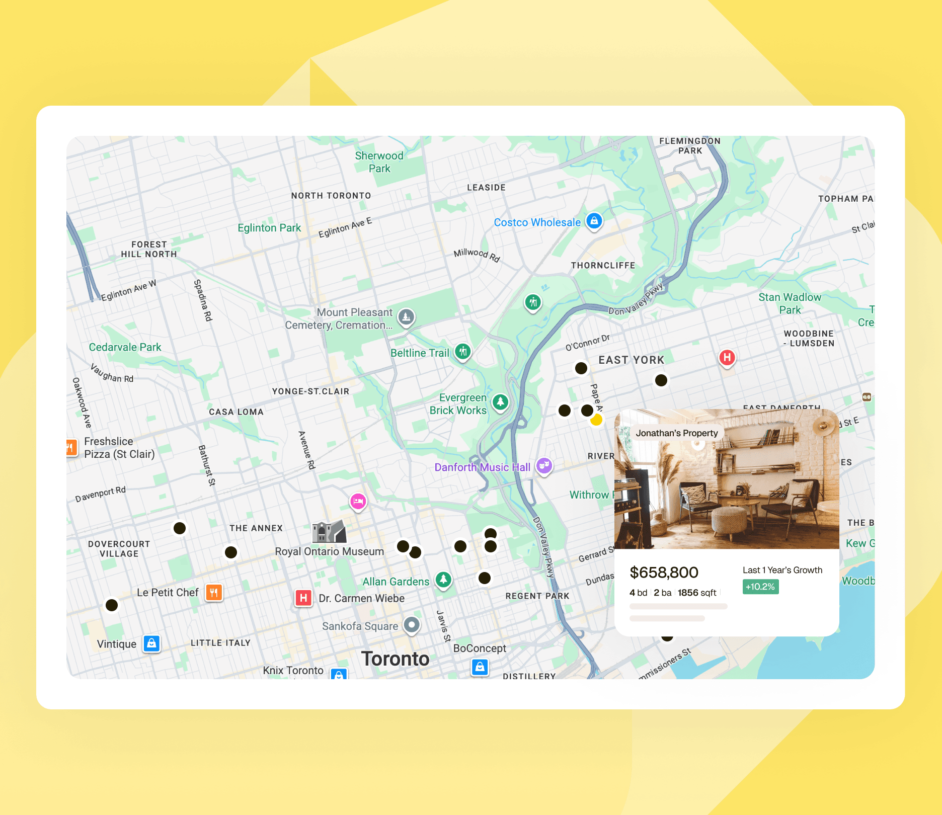 See every property your clients own — with live valuations and contact details — all in one unified view.